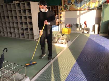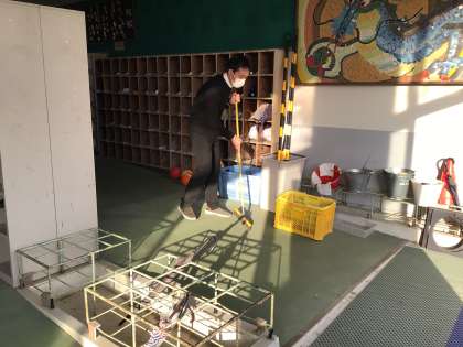 3年生は明日の私立入試に向けて、上履きを手にとり、慌ただしく帰りました。いつも以上に昇降口に土が残りました。下校後、進路指導主事の先生が黙々と掃いてきれいにしていました。