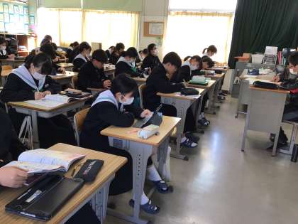2/13 明日に向けて集中(テスト前日) 公開日 2024/02/13 更新日 2024/02/13 生徒の活動 明日からのテストに向けて黙々と勉強したり、友達や先生に聞いたりと、今日はいつもっ少し空気が違いました。 3連休で勉強した子は、自分はどこまでできてどこが課題かが見えたのでしょう。理科の問題を私(校長)まで聞きに来た子がいました。「できるようになりたい」「分かりたい」という熱量を感じてうれしかったです。