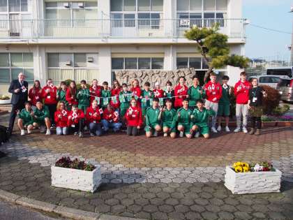 2/20 ダービーシャー交流(11) 公開日 2024/02/20 更新日 2024/02/20 学校行事 3年生は受検が近いため、極力交流は避けています。 本日の3年生下校が留学生の下校と重なってしまいました。天候が久しぶりによかったので、一緒に写真を撮りました。3年生にとっても貴重な思い出になったようです。これが、受検のエネルギーになってくれたらうれしいです。