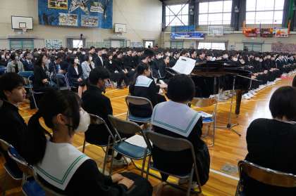 証書授与では、2年生がBGMを弾いてくれました。合唱コンクールの学級曲でした。
