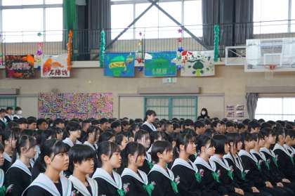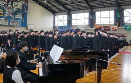 送る言葉と送る歌。後輩からの最後のプレゼントです。卒業生は噛み締めながら聴きました。
