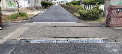 正門の側溝が割れかけており、このままだとバスや教科書を運搬するトラックなどの重量のある車両が通ると側溝のふたが割れる危険がありました。