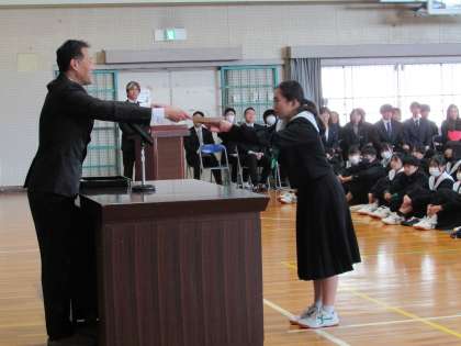 同窓会表彰に間に合わなかった新しい表彰を、修了式の場で行いました。