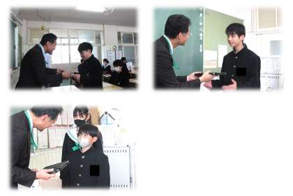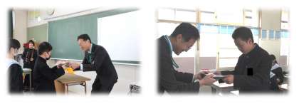 一人一人名前を確認して渡しました。生徒の名前を覚えるきっかけにもなりました。