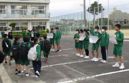 4/16 部活動勧誘あいさつ運動 公開日 2024/04/16 更新日 2024/04/16 生徒の活動 今週一週間の限定で、朝のあいさつ運動を兼ねて各部活動が勧誘活動を行っています。昨年度までなかった活動ですので、先輩が手探りで挑戦しています。 うまくいかなかったことが必ずあります。明日以降でどのように改善してくるか、楽しみです。 生徒は、正解のない取組を通して最適解や納得解を見つけるトレーニングを行っています。