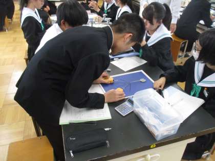 3年生は理科で力の合成の実験を行っていました。丁寧に行うことで精度を高められる実験です。