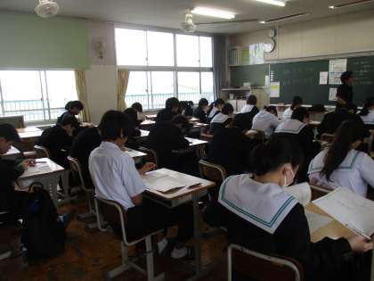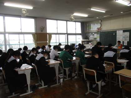 全国一斉で、3年生は全国学力調査(全国学テ)を行いました。心地よい熱気と静けさが、3年生フロアから感じられました。