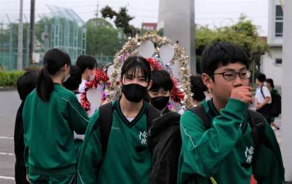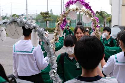 生活向上委員会が行っている、アーチをくぐるあいさつ運動は、生徒と生徒の距離もぐっと縮まる素敵な活動です。ですが、くぐってもらわないと話になりません。