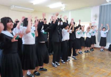 パフォーマンスは、みんなと一緒だと不思議なことに恥ずかしさがどこかに行ってしまいます。闘竜祭などの学校行事は非日常のできごとですが、日常の中で恥ずかしさを捨てて練習できる時間もよいものですね。