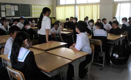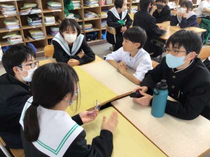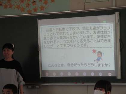 学習は教室でオンラインです。養護教諭が問いかけた後、生徒はグループになってケースワークを行いました。最後に養護教諭がまとめてオンラインを終えたところで教室から拍手が聞こえてきました。生徒の優しさに養護教諭がとても喜んでいました。