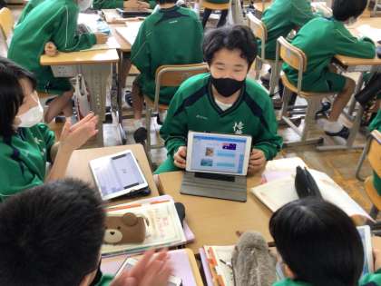 授業後に、授業の場面を切り取って助言してもらったり、新たな技を教えてもらったりしていました。明日からの授業に生かします。