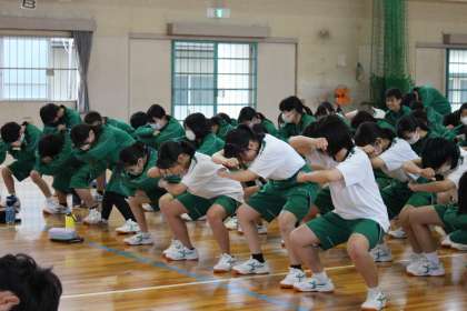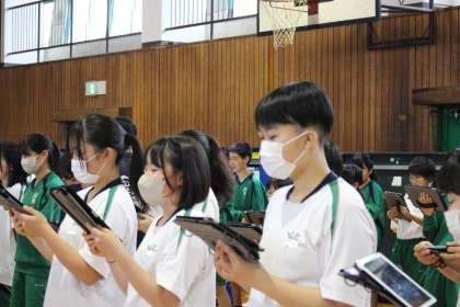 闘竜祭の縦割り練習が始まりました。団ごとに力を練習を工夫します。タブレットを使って練習をするのは今風ですね。