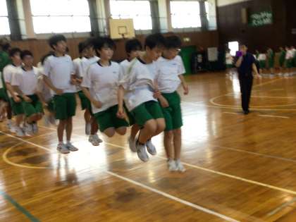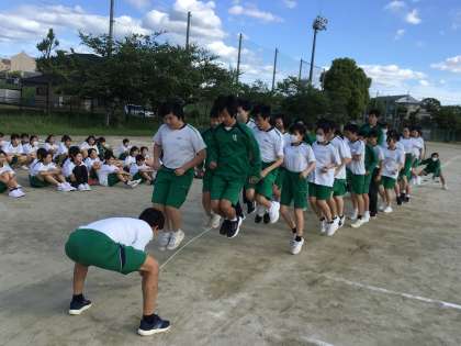 「先輩たちの跳び方を見て、自分たちはあんなに速いペースでは跳べないけれど、もう少しテンポを上げてもいいかもしれないと思いました」「今日なんて涼しいのに、縄の回し手の二人が汗をしたたらせてみんなに声をかけながら頑張ってくれている姿を見て、私ももっと大きな声で掛け声を出して協力したいと思いました」という声が、生徒たちから聞かれました。