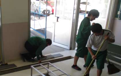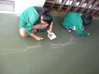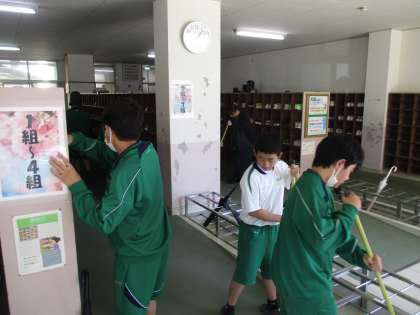 昨年度の1年(現2年)も苦労していましたが、溝の方向に沿ってゴミを集めて、砂粒一つまで取り切ろうとしていました。そうじを大切にしてくれてありがとう。