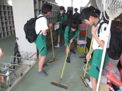 闘竜祭強調週間の2週間は昇降口に砂がたくさん上がります。下校時に生徒がきれいにしてくれていました。一日の終わりにしっかりと決着をつけること、それを自主的に行えることがうれしいです。