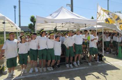 当日、熱中症防止のため急遽「テントでの応援」に切り替えました。生徒たちは団でギュッとまとまり、ジャンプしながら応援していました。本部席までその熱気が伝わってきました。