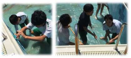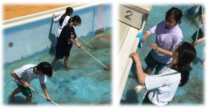 昨年度は大雨で中止になったプール清掃。