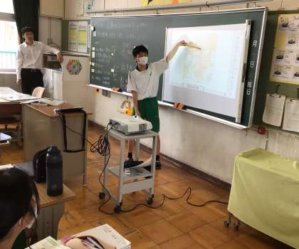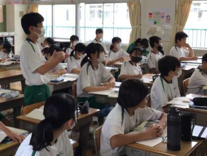 この授業では「前で説明してごらん。」とY先生が声をかけ、前で説明していました。周りの生徒の聞き方もよく、発表者も聞き手も生きる授業でした。