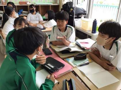 枕草子を読んで書き方やイメージの仕方を学んだ後だったので、状況がイメージできるような文が書ける生徒が多かったが、グループで話し合うことでさらに発想が広がったりいい表現を使うことができたりしたと思う。ただ、友達に教えてもらったことをそのまま書く生徒もいたので、参考にしながら自分の言葉で表現するよう働きかけたい。