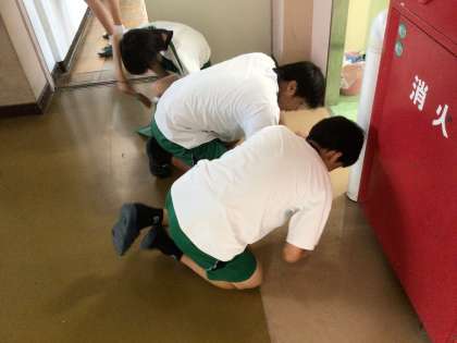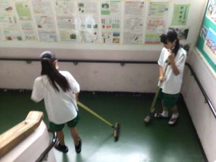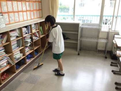 お客様が来る日ということでボランティア清掃を呼びかけたところ、多くの生徒がほうきを手に、自主的に動いていました。先に掃除をしていた仲間を見て、「私たちもやろうよ」という声も聞こえてきました。竜中生の『貢献』がうれしい出来事でした。