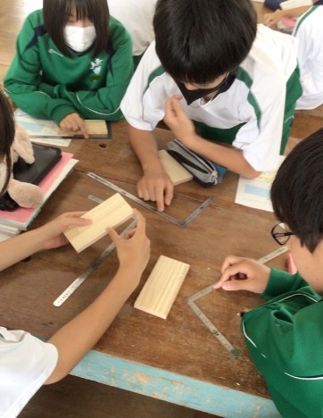正確なけがきの重要性に気付かせるために、細かなことは伝えずに木材の切断を行った。実際に切断した木材の寸法を測定すると、10mm未満がほとんどであり、その時点で何人かの生徒は10mmよりも外側を切断すると気づき、それが自然とクラス全体へ伝わっていった。