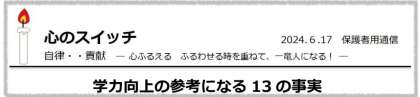 授業参観で1年生の保護者に紙配布した、学力向上のヒントをまとめた資料を2・3年生の保護者の皆様と生徒も見られるようにアップしておきます。