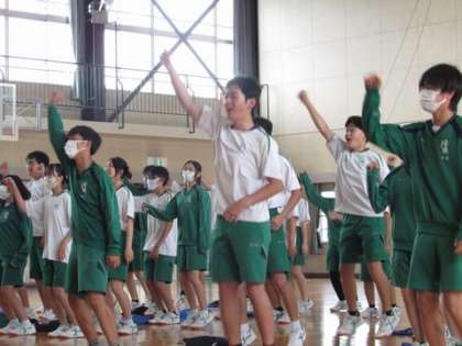 明日から大会が始まる運動部や吹奏楽部の仲間のために、部活に所属していない生徒や大会のない文化部の生徒によるエールをおくりました。