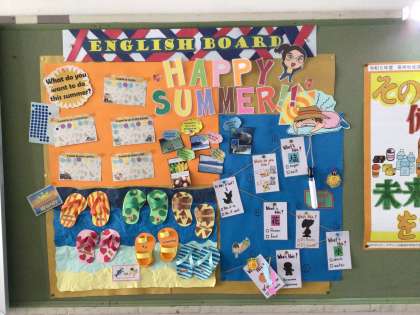※下の写真は、ALTの先生が英語を好きになってほしいという願いを込めてつくってくださる掲示物です。