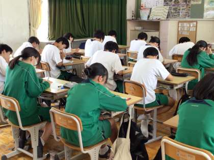 国語の授業でプリントを行っていました。土日が大会で疲れ切っている子もいると思いますが、プリント学習では集中力を保って行っていました。