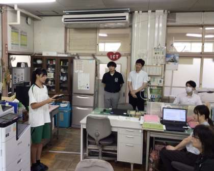 きたる7月9日(火)、生徒会が企画した全校縦割り会食「みんなで楽しく食べt i e !」の実施を前に、発案生徒が職員室で目的の説明や協力の依頼を行いました。