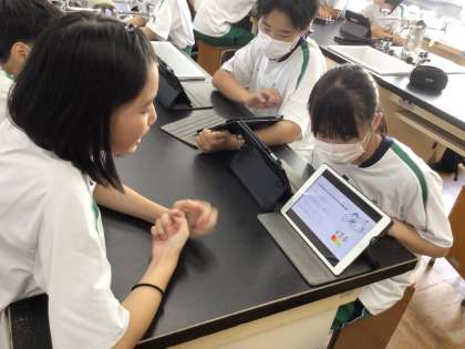 下の写真は、DC委員会の活動の様子です。自分たちでデジタル・シティズンシップについて調べ、どのように活用していくとよいのか、それぞれの学級で講義を行います。発表ソフトを用いて作成した資料を使い、リハーサルを行っていました。