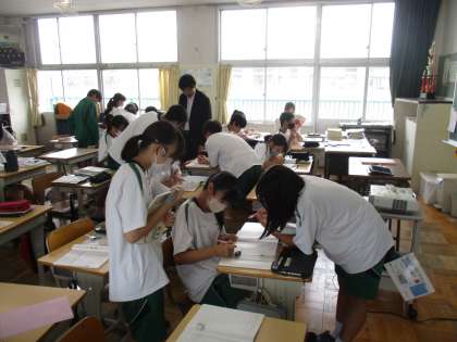 マイプラン学習(連立方程式)を終えて、数学は一次関数に入りました。授業の進め方はこれまでの方法に戻りましたが、随所に生徒同士で考え、探究する時間を組み入れています。