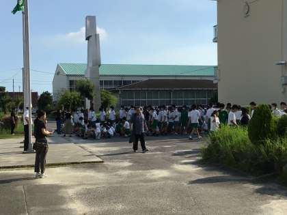 昨日の避難訓練、抜き打ちで放課中の設定で行いました。生徒には「今週中どこかで地震が来る」という指導を月曜日にしたのですが、実のところ年間行事計画や昇竜ノートなどには、「11日 避難訓練」と記載していました。