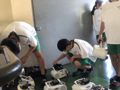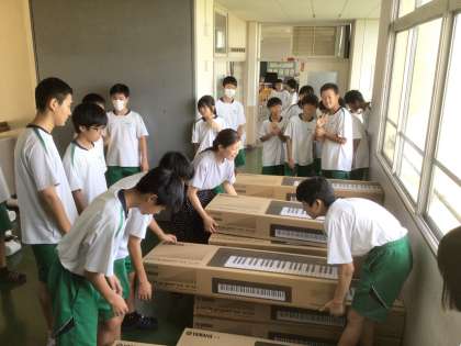 朝の活動の時間に、各学級に配布されるCDラジカセやキーボードが手渡されました。定期テストも終わり、虹竜祭で行われる合唱コンクールに向けて始動します。
