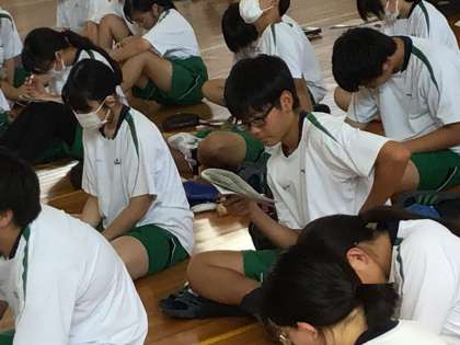 進路について、新たな進路希望調査の提出や各公立高等学校のホームページに推薦入試に関する情報が掲載されたことなど、大切な連絡がされました。生徒たちからは『人物に優れており』という言葉が推薦条件の全てに書かれていることを知りました。先生たちが日頃の生活や周りのために行動できる人間性が大切って言っていたのと繋がるなと感じました。」という声が聞かれました。
