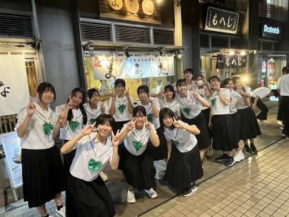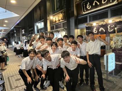 【修学旅行1日目】夕食はクラスでもんじゃ1組 公開日 2024/09/17 更新日 2024/09/17 学校行事 もんじゃ焼き「まるた」の前でパシャリ。 美味しくいただきました。 ※その他のクラスは、「非公開ページ」に公開します。