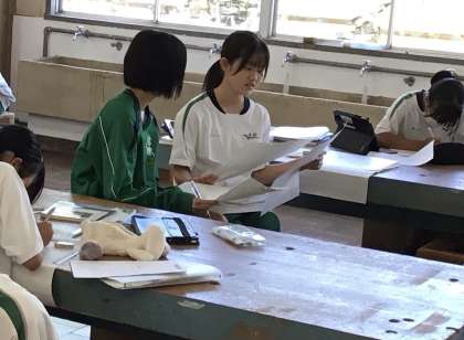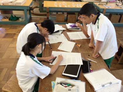 9/26 仲間に聞きたくなる(1年技術) 公開日 2024/09/26 更新日 2024/09/26 生徒の活動 技術(木工)の授業で本棚をつくっています。 イメージ図から等角図、そして材料取り図を作成する最も頭を使う授業でした。 ・木の幅が12ミリ!…10ミリだったら楽なのに… ・大きくすると木が足りない…計算しなきゃ! 難しい課題でしたが、何をするかはっきりしていたので最後まであきらめず取り組んでいました。相談できる仲間のおかげですね。