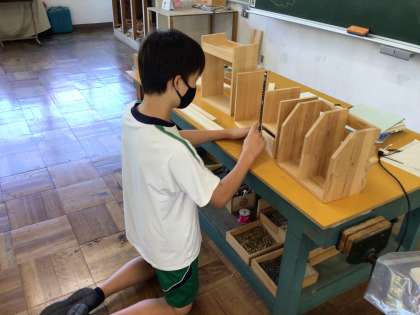 9/26 必死に考える(1年技術) 公開日 2024/09/26 更新日 2024/09/26 生徒の活動 技術(木工)の授業で本棚をつくっています。 等角図、そして材料取り図を作成する授業でした。一人一人よく考えているなあと感心しました。 【写真上】黒板前の見本で調べて、必死に考えます。 【写真中】本を取り出しやすい大きさをイメージします。 【写真下】計算して、最低限の材料で作ります(SDGs)