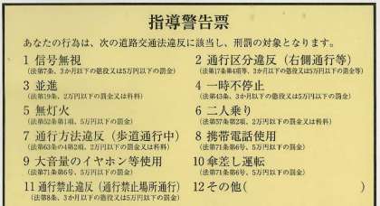 地域ぐるみで守りましょう【自転車の乗り方】 公開日 2024/09/26 更新日 2024/09/26 お知らせ 秋の交通安全運動の一環として、自転車の乗り方について警察からいただいた「指導警告票」をもとに各学級で指導を行いました。 交通違反は自分と他者の命に関わる違反ですので、学校でも厳格に指導します。どうか地域やご家庭でも子どもたちに教育をお願いします。 ★いただいた指導警告票は→→→こちら(PDF)