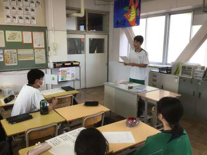 また、翌日、朝の会などで説明する練習をしていた委員会がいくつかありました。特に3年学級委員会は他学年への連絡もあるようで練習に熱が入っていました。【写真中】