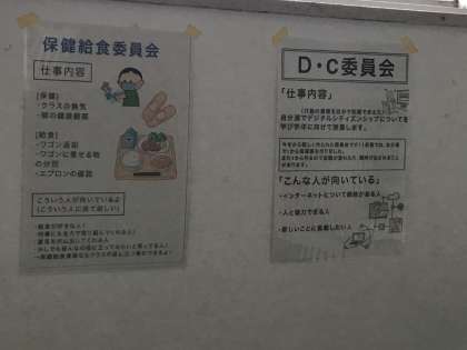 それぞれの委員会の活動の紹介だけでなく、適性も書き入れるなど、心配りが感じられる掲示となっております。