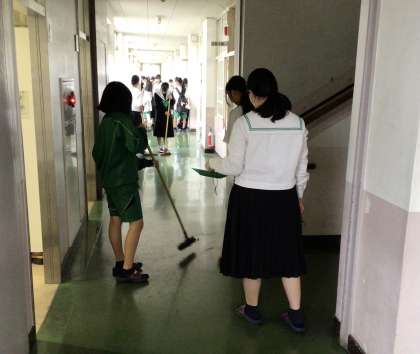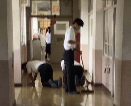 翌日、よく床が汚れるトイレを見に行ったら、きれいになっていました。どうやら1年生の先生がきれいにしてくれたようです。さらに、活動開始の8時10分前にもかかわらず、多くの生徒が廊下や階段を清掃していました。