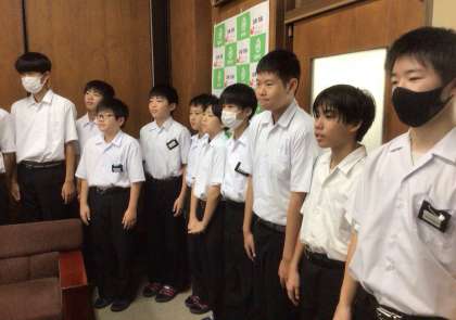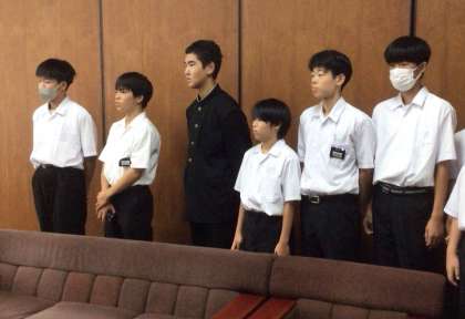 7日(月)、男子バスケ部が校長室に優勝報告と応援のお礼を伝えにきました。竜神中の部活動及び地域部活動の目標の一つに、「周囲に感謝できるチーム、応援されるチーム」があります。