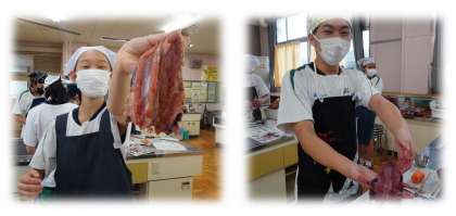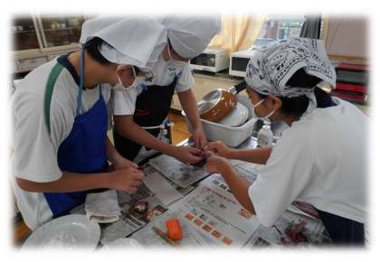 「いわしの蒲焼の調理実習では、内臓を気にしてね。」と理科の授業で学習。(最近はこうした複数の教科で連携した授業を行います)