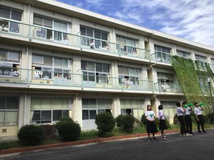 3年生学級委員会の音頭で、全校生徒が中庭に向かって校歌を合唱しました。たくさんの笑顔があふれ、また一つ、校歌のレベルが上がりました。本番でも、きっと迫力ある歌声を響かせてくれるでしょう。