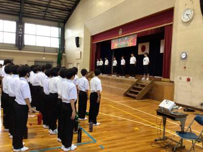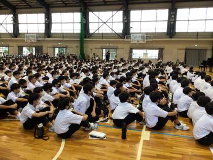 虹竜祭フィナーレ、生徒会役員のメッセージを熱き静けさで聞き入る、見入る生徒たち。互いの頑張りを認め合っているからできる姿ですね。