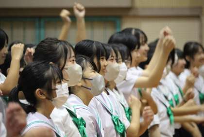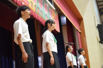 また緊張をほぐすために、生徒会役員が選挙公約「体操を取り入れて学校を元気に!」を地で行く体操を披露。生徒の思いを生かしたオープニングでした。