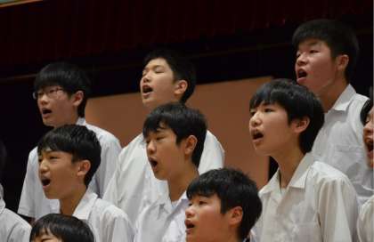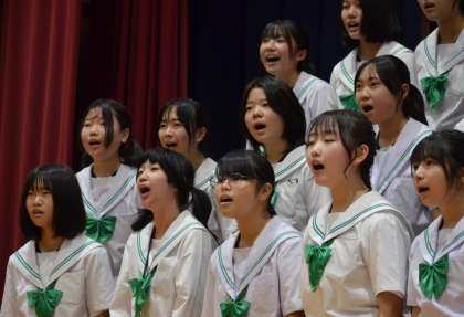 クラスごとに写真で合唱の様子を紹介します。音源の公開をすることはできません。写真でご想像ください。