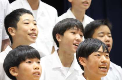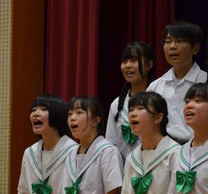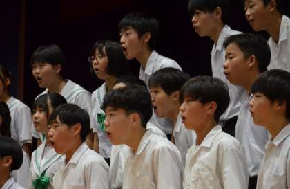 クラスごとに写真で合唱の様子を紹介します。音源の公開をすることはできません。写真でご想像ください。