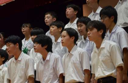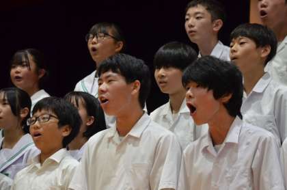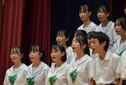 クラスごとに写真で合唱の様子を紹介します。音源の公開をすることはできません。写真でご想像ください。